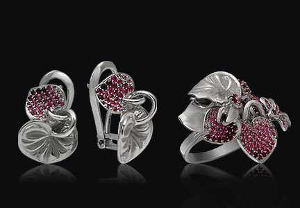 Белое золото (585), рубины, сапфиры.