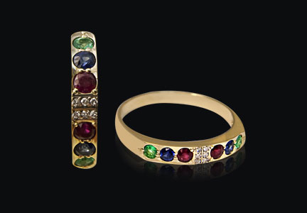 Желтое золото (585), цветные камни. Варианты: белое золото (585), бриллианты, серебро (925), драгоценные и полудрагоценные камни.