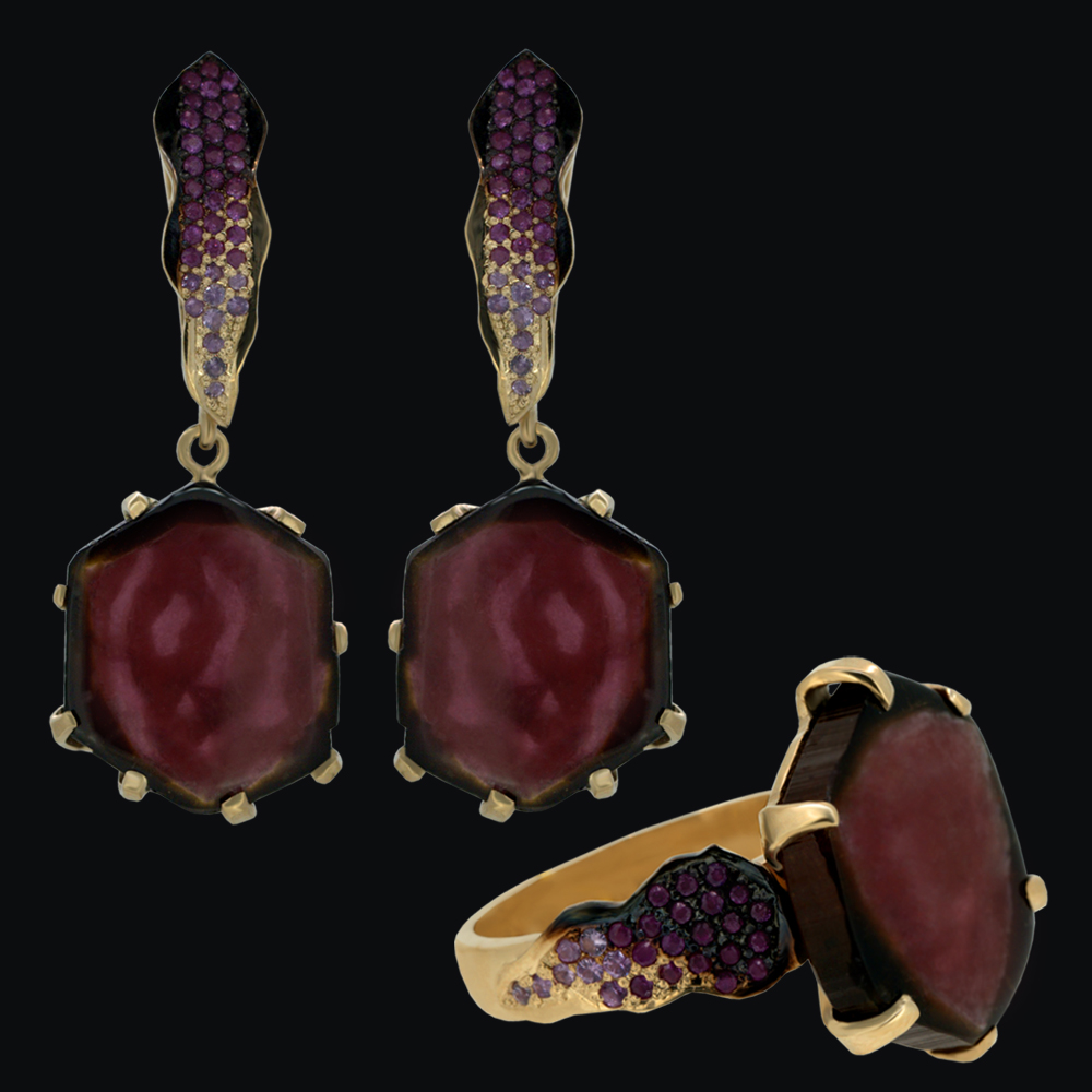 Золото(585), турмалины, сапфиры.
