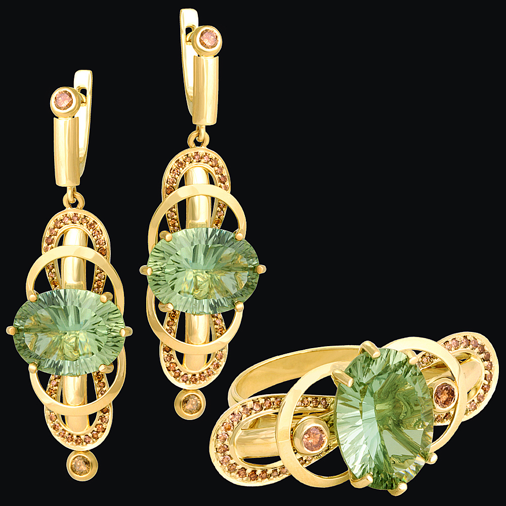 Золото(585), празиолиты, коньячные бриллианты.