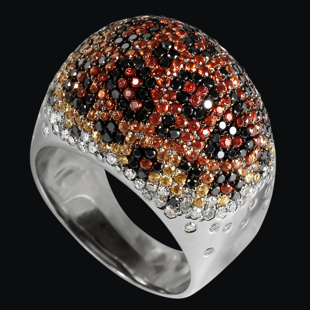 Белое золото (585), черные и белые бриллианты, цветные сапфиры.
