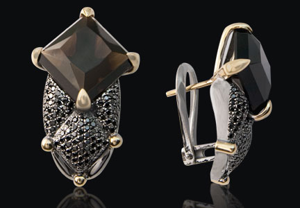 Желтое и белое золото (585), морион, черные бриллианты.
