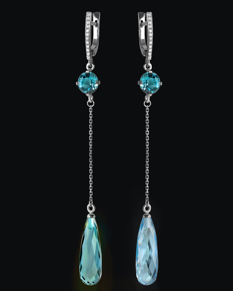 Белое золото (585), бриллианты, топазы.
