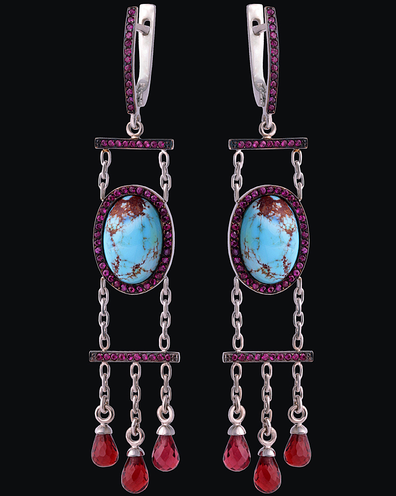 Золото(585), бирюза, рубины, гранаты.