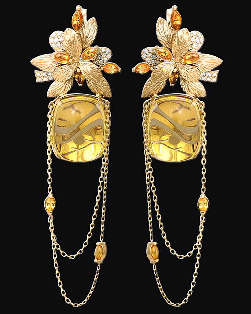 Золото(585), лимонный кварц, цитрины, сапфиры, бриллианты.