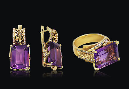 Желтое золото (585), аметист, бриллианты.