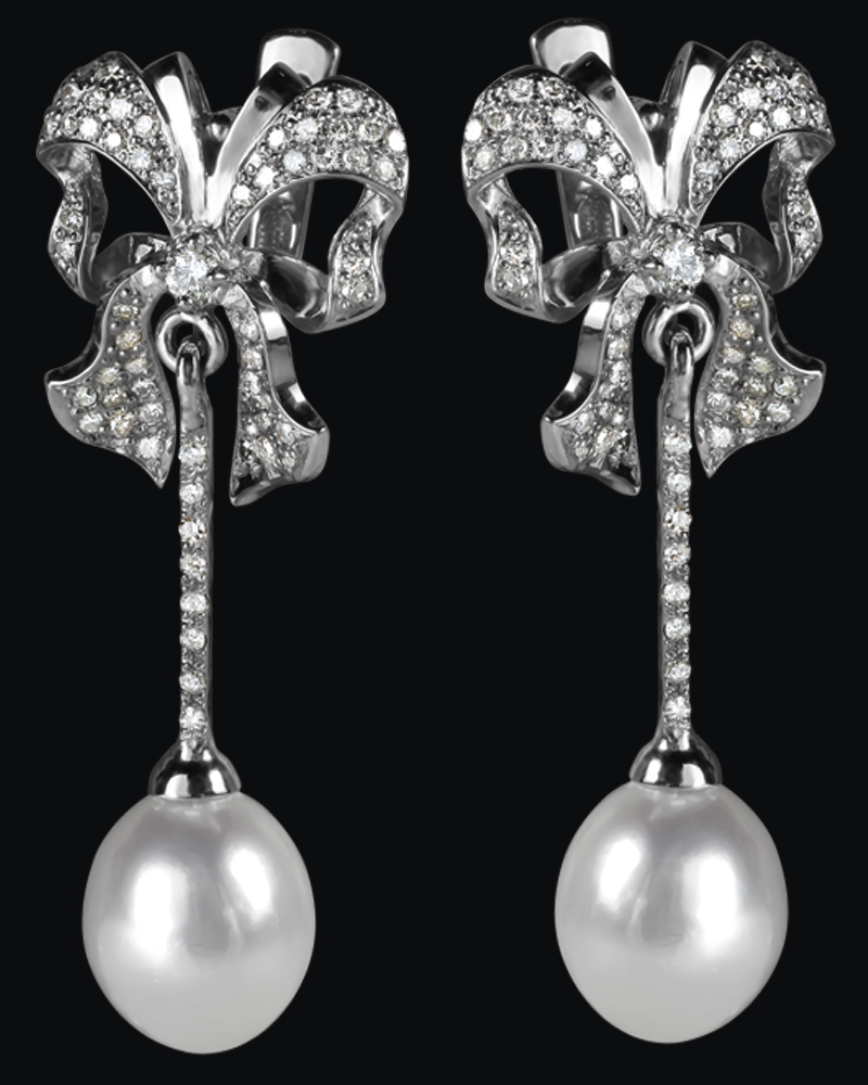 Белое золото (585), жемчуг, бриллианты.