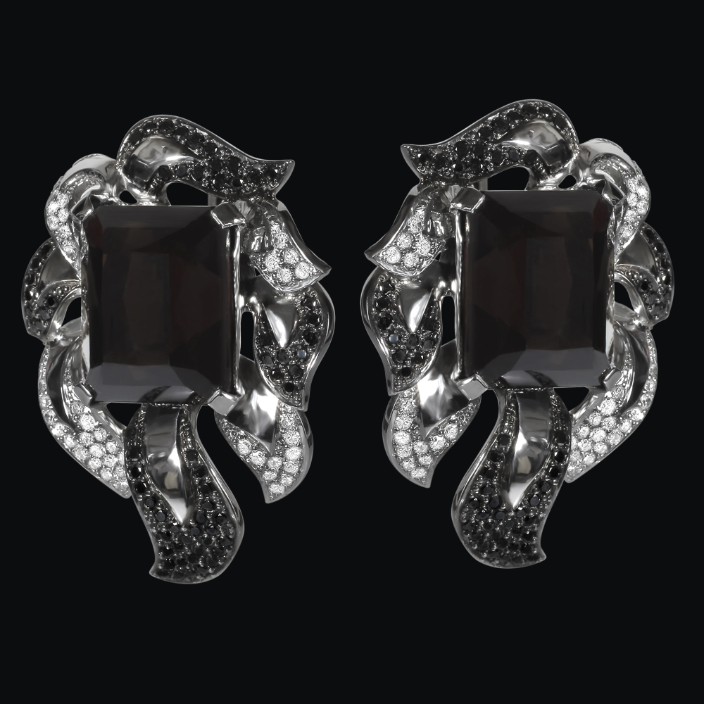 Золото (585), белые и черные бриллианты, морион.