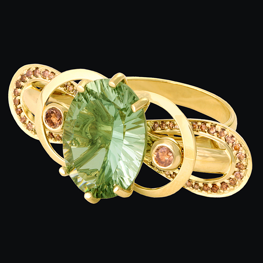 Золото(585), празиолит, коньячные бриллианты.