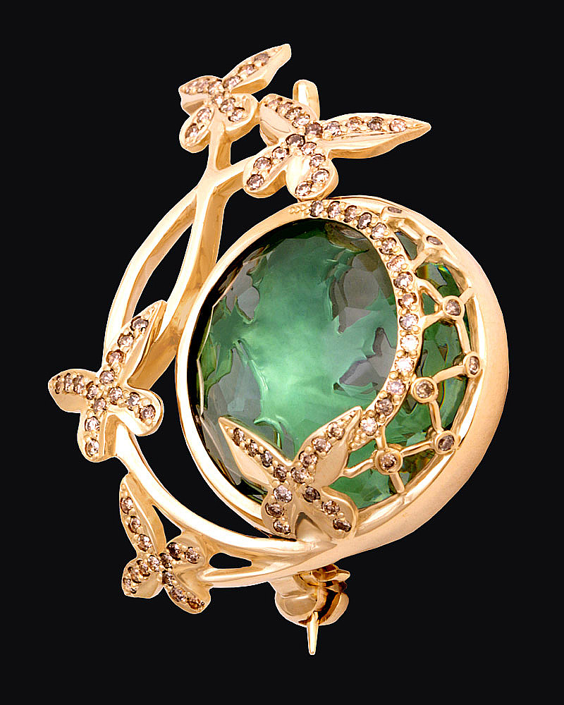 Золото(585), празиолит, бриллианты коньячные.