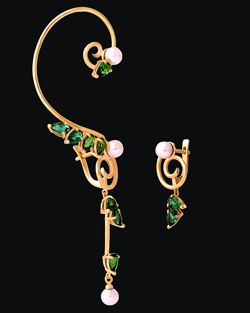 Золото(585), жемчуг, зеленый кварц.