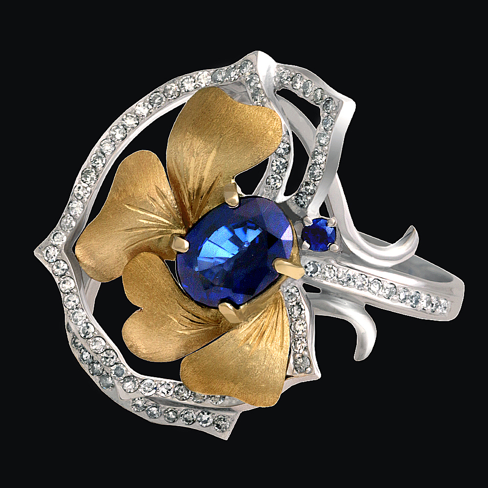 Золото(585), сапфир, бриллианты.